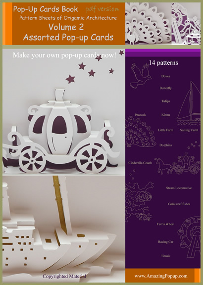 Same as ebook Volume One, each pop-up cards depicted can be created using just a single sheet of paper.